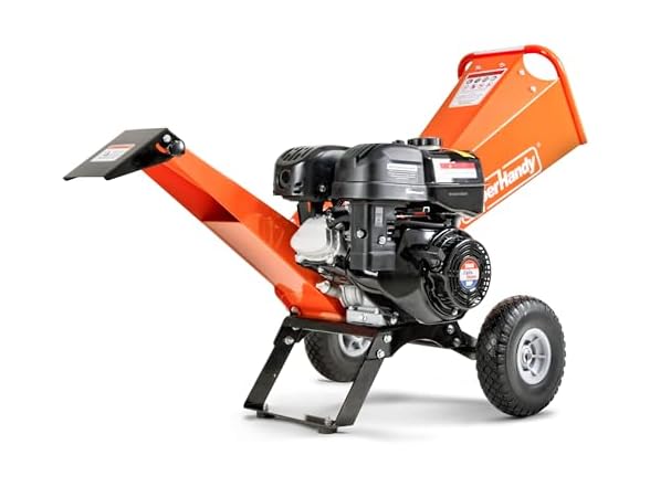 Tackle fallen branches, limbs, and yard debris with confidence using the SuperHandy 4-Inch Wood Chipper Shredder Mulcher. Designed for serious cleanup jobs, this compact yet powerful chipper features a high-torque 9HP engine and a rotor system capable of chipping up to 4 in. thick branches with ease. Its vertically adjustable chute gives you control over chip discharge direction, whether you're filling a bin or clearing a field. Durable double-edge reversible blades extend service life, while the 10 in. wheels offer smooth portability around your property. Whether you’re managing farm waste, storm cleanup, or seasonal yard maintenance, this machine delivers dependable performance every time.- 4-Inch Max Capacity – Cuts branches up to 4 in. thick with a compact rotor system ideal for home gardens, farms, and land clearing