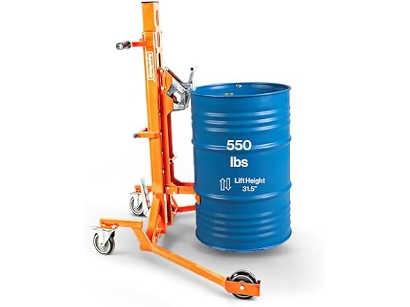 - Heavy-Duty Drum Handling Solution: Designed for 55-gallon (208L) drums, this hydraulic drum lift supports up to 550 lbs, making it ideal for lifting, lowering, and horizontal transfers in warehouses, factories, and industrial settings.