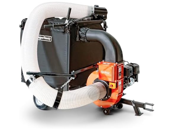 Clean up large properties quickly with the SuperHandy Tow-Behind Leaf and Lawn Vacuum. Designed for high-volume yard debris, this vacuum features a massive 180-gallon collection bag, powered by a reliable 15HP electric start engine. Its serrated metal impeller shreds and vacuums leaves and grass clippings with ease, helping you tackle fall cleanup, landscaping projects, and property maintenance with less downtime. The one-hand dump design makes emptying fast and easy, while the durable frame and 13-inch pneumatic wheels ensure smooth towing behind your lawn tractor or trailer—even across uneven terrain. Ideal for residential estates, landscaping pros, or anyone managing lots of green space.