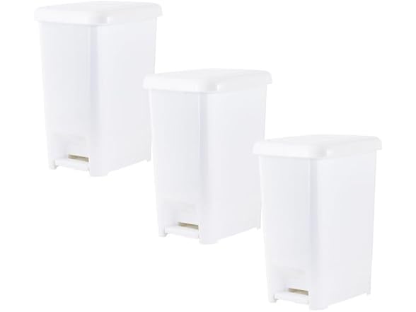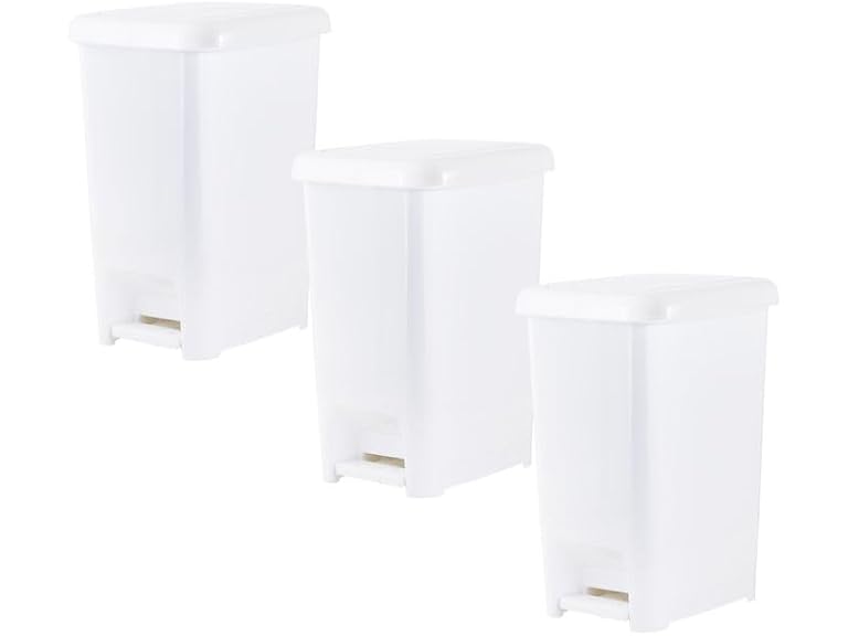 - Superio Slim Step On Pedal Plastic Trash Can, Waste Bin for Under Desk, Office, Bedroom, Bathroom, Kitchen (2.5 gal) (White 3 Pack)