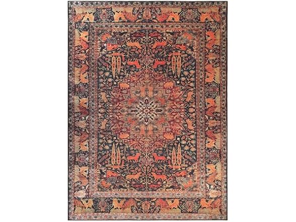- 𝐒𝐓𝐘𝐋𝐄 𝐀𝐍𝐃 𝐃𝐄𝐒𝐈𝐆𝐍: Displays an inviting, traditional medallion and animal nature pattern; Pairs with a variety of home decor styles; Crafted with a sturdy cotton canvas backing (rug pad recommended); Easy to maintain and allows chairs to slide atop easily