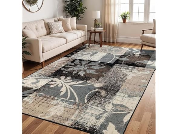- (1) Superior Contemporary Floral Patchwork Indoor Area Rug (Your Choice of Color and Size)