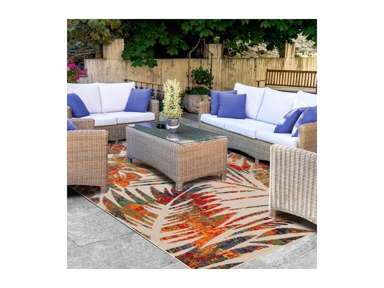 - (1) Superior Indoor Outdoor Area Rug, Floor Cover, Perfect Decor for Patio, Bedroom, Kitchen, Living Room, Entry, Playroom, Nursery, Tropical Leaves, Siesta Collection - your choice of size