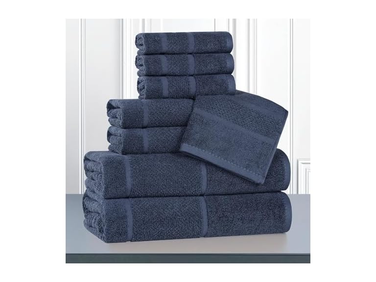 - (1) Superior Mile Smart Twist Viscose Cotton Blend Medium Weight Towels, For Guest Bath,V Bathroom, Spa, Quick Dry, Ultra-Soft Towels, Bath Essentials, Border Detail, 8 Piece Assorted Towel Set - Choose Color