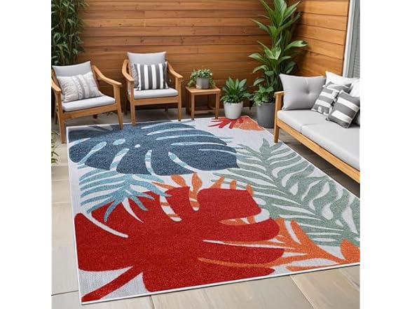 - 𝐌𝐀𝐓𝐂𝐇 𝐘𝐎𝐔𝐑 𝐃𝐄𝐂𝐎𝐑: Tropical leaves pattern adds a relaxed beauty to your floors; Available in Blue-Green/Cream and Multicolor color options; Pairs perfectly with Coastal, Tropical or Modern home decor styles