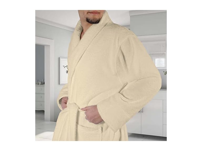 - COZY DESIGN: Features terry belt and 2 belt loops for varying heights, 2 front patch pockets, a shawl collar and fold back style sleeves. Attached loop at the neck allows towel to hang and dry quickly; plush and lightweight to wear around the house