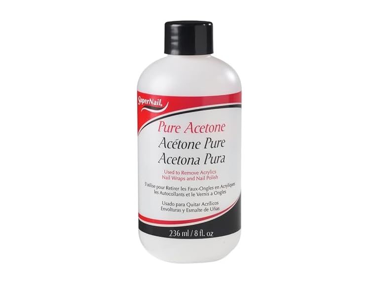 Supernail Pure Acetone Nail Polish Remover (8 fl oz) is a professional-strength acetone formula designed to quickly and effectively remove nail polish, gel, acrylics, and dip powder. It works fast to make nail removal easy and efficient for both salon and at-home use.