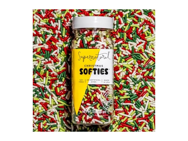 - (1) Christmas Softies Natural Sprinkles by Supernatural, Made in USA, No Artificial Dyes, Soy Free, Gluten Free, Vegan, 3 OZ
