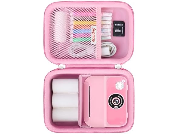 - Organized Digital Cameras Case (Unique Design): Case for Gofunly kids camera features a double zipper design that opens and closes freely, easy to store your beloved instant print camera for kids and accessories. Extra mesh pocket for storing color pen, type c cable, roll print paper, sd card. A detachable velcro divider allows you to adjust the compartment as needed, perfect for storing extra printer paper and other essentials. Keep everything organized.