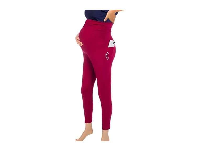 - (1) SUPPORTSMART Maternity Leggings with Pockets - Over The Belly Pregnancy Active Wear Workout Yoga Tights Pants, Ultra Soft, Non-See Through & Squat Proof, Full Belly Support - Burgundy, Medium