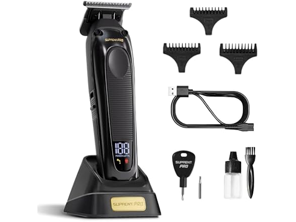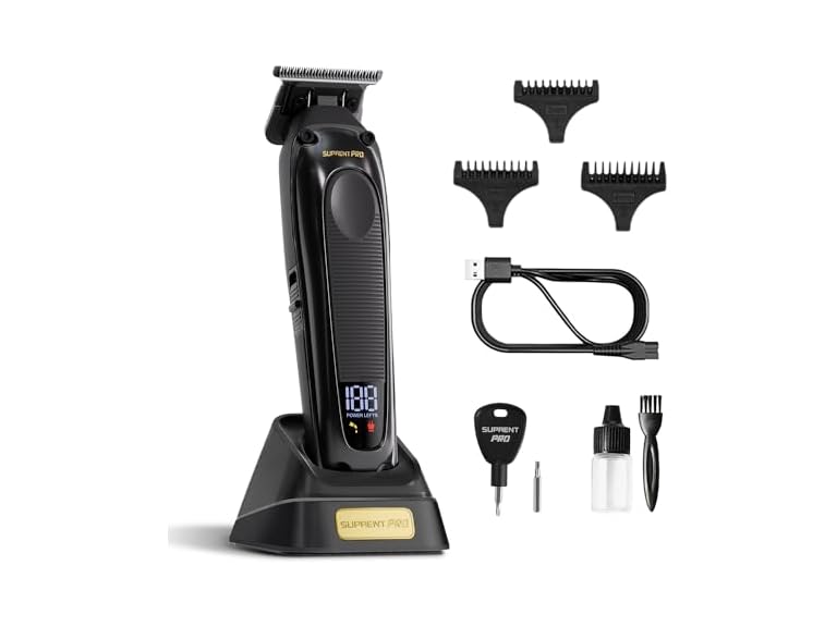 - SUPRENT PRO Professional Hair Trimmer - High Torque Brushless Motor & Detachable Blade - Cordless Beard Trimmer for Barbers with Charging Base - Premium Finishing T- Blade Trimmer (Black
