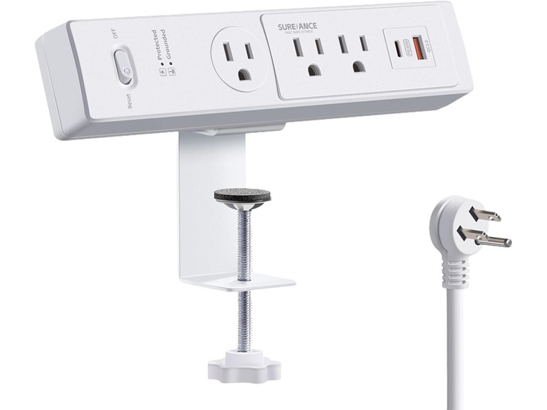 - 【10 Safeguards Desk Clamp Power Strip】 The edge mount power strip features a fireproof casing, overload protection, grounding protection, short-circuit protection, overcurrent protection, overvoltage protection, overheating protection, aging/moisture resistance, and anti-electric shock protection. 980J surge protection (3X industry standard) guards your $3,000+ tech gear against lightning strikes and power spikes