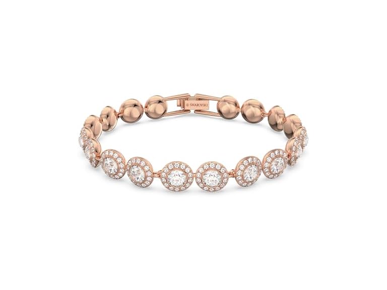 Pure, timeless sophistication. With a stunning mix of rose gold-tone plated metal and crystal pavé, this bracelet adds a feminine sparkle to any look. It combines perfectly with other pieces from the Angelic family. Wear it with a Swarovski watch for a stylish daytime look. The bracelet measures 17 cm.