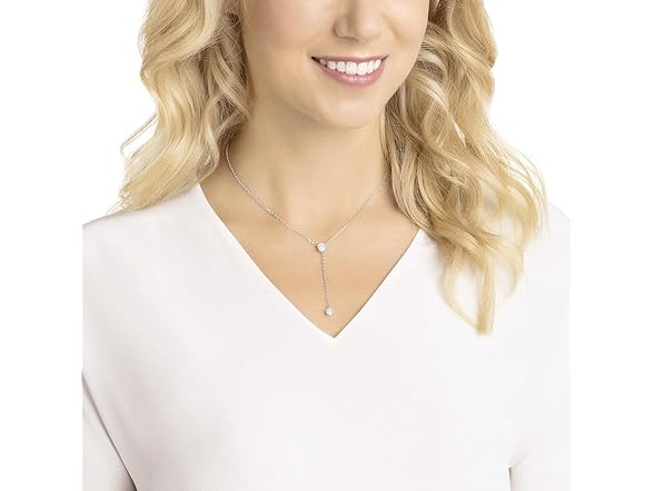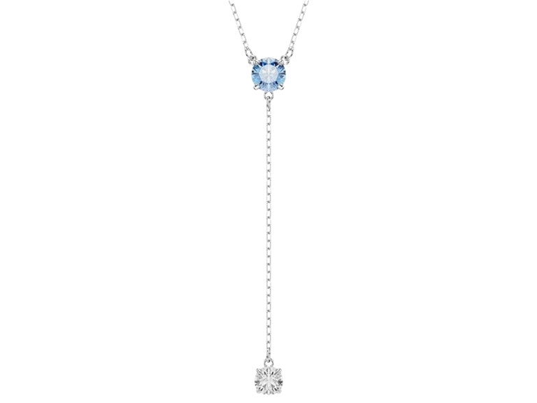 - (1) Swarovski Stilla Attract Y necklace, Round cut, Blue, Rhodium finish