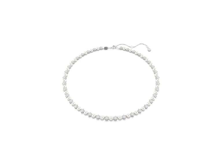 This Swarovski Tennis Matrix 5689623 necklace is designed for women. This all-over rhodium-plated design incorporates Swarovski Zirconia and Swarovski Crystal Pearls that alternate in a flawless and sophisticated row. An additional extender allows you to adjust the size. Length: 41 - 44 cm.