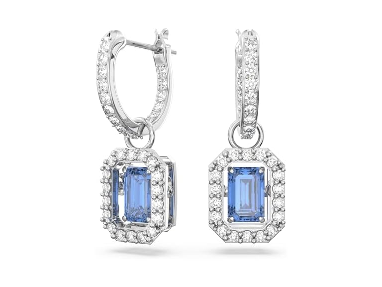 - (1) Swarovski Una Earrings, Octagon cut Swarovski Zirconia, Blue, Rhodium Finish