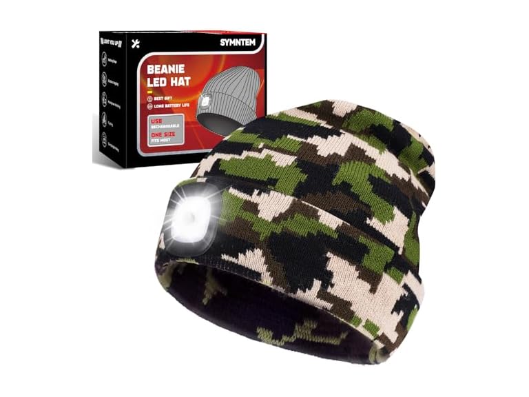 - (1) SYMNTEM Unisex Beanie Hat with Light, Rechargeable Headlight Cap, Stocking Stuffers for Men, Cool Gadget Gifts for Him, Birthday Gifts for Women, Gifts for Him, Camouflage