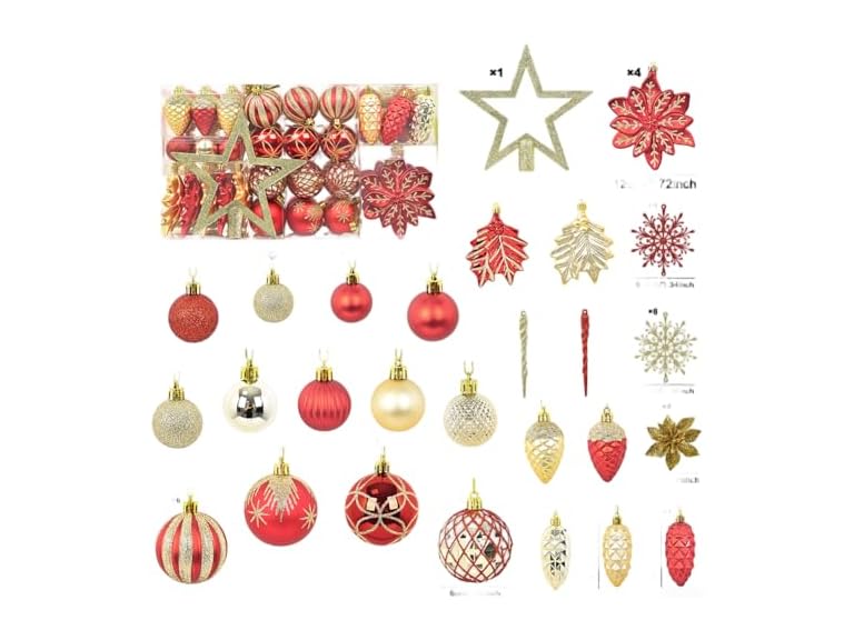 - [COMPLETE 110 PCS ORNAMENTS SET] This extensive collection offers an assortment of unique shapes to beautifully decorate your tree and enhance your festive atmosphere.