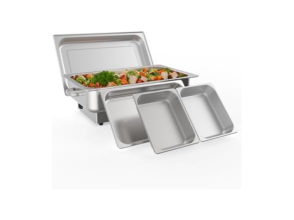 - Takywep Electric Chafing Dish,Food Warmer and Servers,9QT Rectangular Buffet Set Stainless Steel with 1 Full-Size Pan & 2 Half-Size Pan, Temperature Control Display for Parties, Catering