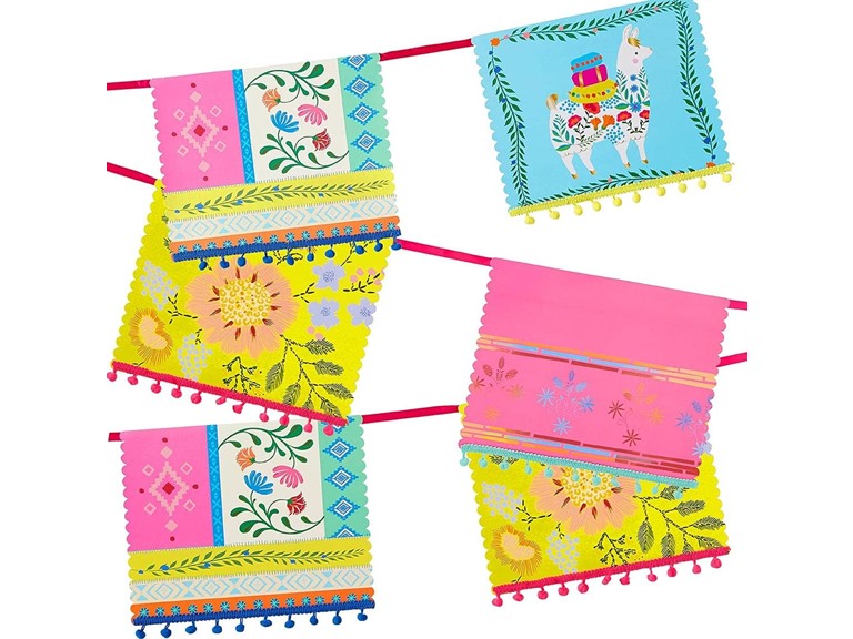 - (1) Talking Tables Colorful Mexican Pom Pom Garland for Boho Fiesta Birthday Party Llama Decor; Great for Encanto, Moana Themes; 13ft Paper Garland, Easy to Hang