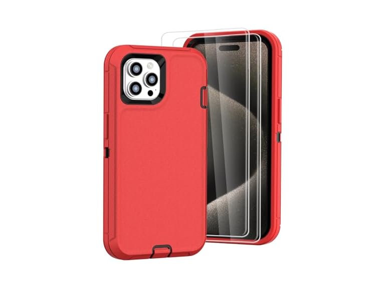 - (1) Tall silver for iPhone 15 ProMax Case with [2 Screen Protector ], Military Grade Shockproof Heavy Duty Drop Protection Rugged Case 6.7"(red Black)