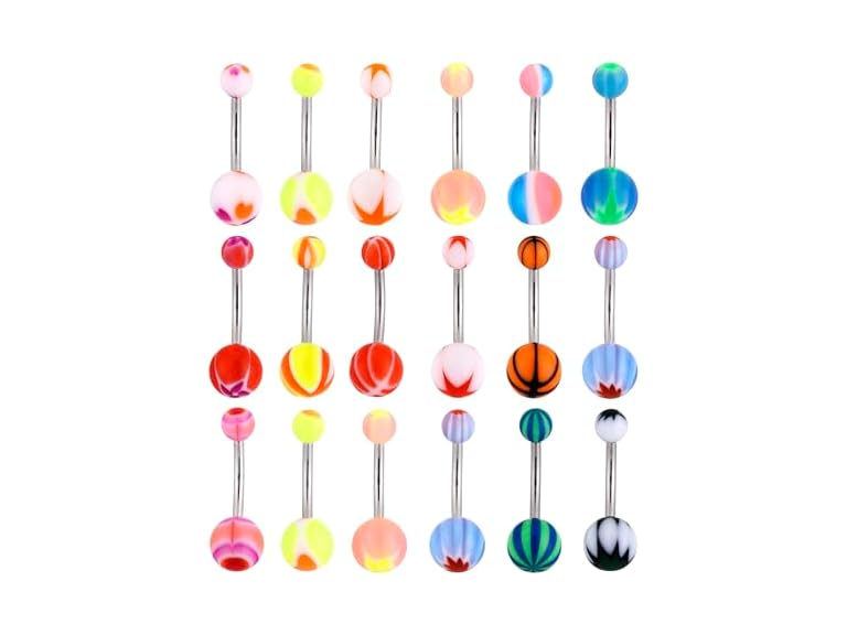 - Ball Belly Button Ring: Package come with 18 pcs different style belly button rings, including the drooping pink navel ring, butterfly belly button, heart belly button, butterfly belly button Piercing, etc. These belly button rings use a charming and cute pink design, adding a touch of eye and charm to your abdomen perforation.
