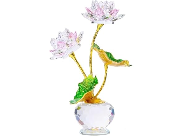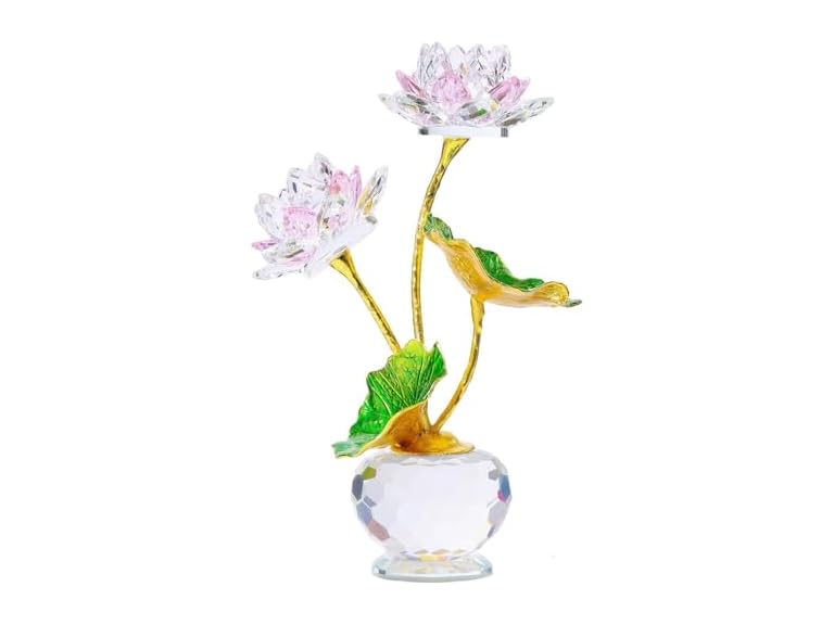 - ELEGANT PINK LOTUS: This crystal pink lotus figurine displays elegance and romance with its exquisite lotus shape. The transparent texture and soft hue of the pink crystal add a warm glow to the lotus, making it appear sparkling in any light. Each petal of the lotus is carefully carved to show the natural beauty and elegance