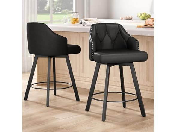 - (1) Tatub 26" Swivel Leather Bar Stools Set of 2, Black Counter Height Stools with Tufted Back and Metal Legs, Upholstered Bar Chairs, Kitchen Island Chairs (Button Tufted and Rivet)
