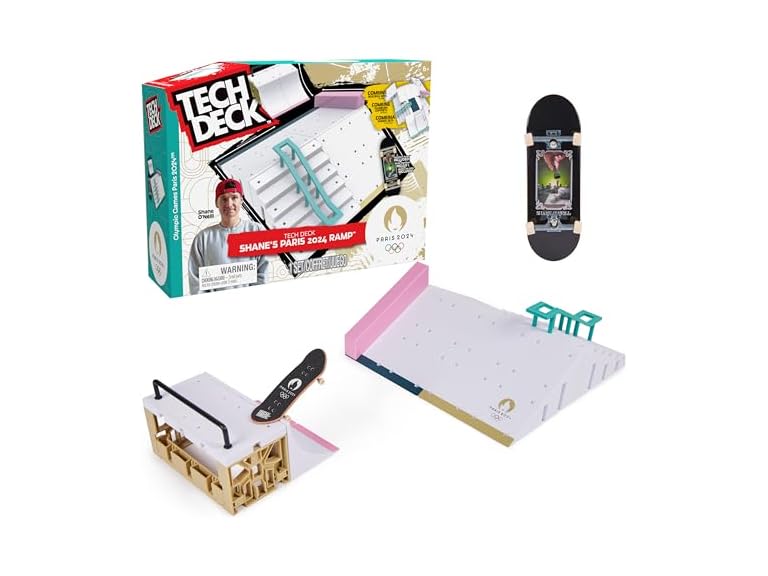 - (1) Tech Deck, Shane O’Neill’s Olympic Games Paris 2024 Ramp Customizable X-Connect Park Creator Playset & Exclusive Fingerboard, Kids Toy for Ages 6+
