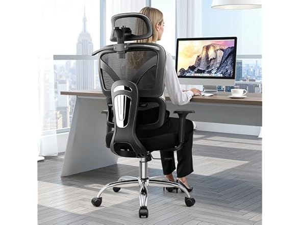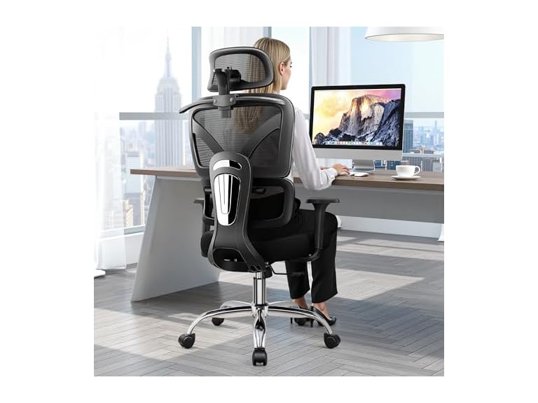 - 【Professional Ergonomic Design】Dedicated to crafting ergonomic, comfortable mesh office chairs for modern workspaces. Curved to human body contours, it offers segmented support for headrest, backrest, lumbar, and seat—perfectly fitting the spine's four-degree curvature. 3D headrest (height/fore-aft/angle) & 3D armrests, fully adjustable for all-day support