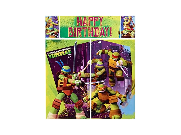 - (1) American Greetings Teenage Mutant Ninja Turtles Party Supplies, Scene Setter Wall Decorations, 5 piece set