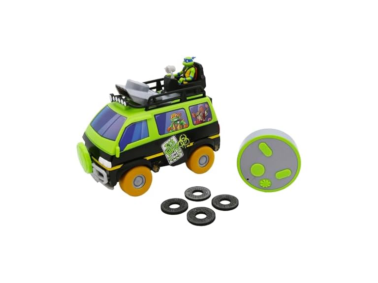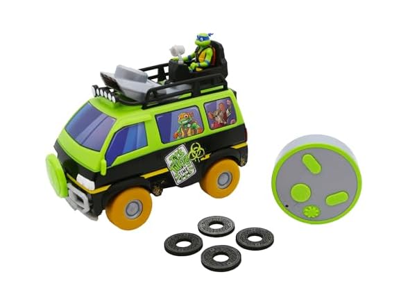 “Yo! Who left the sewer wide open?” The Turtles did (on purpose) so you can roll out and rain down sewer cap justice on every bad guy who dares pop a head above street level. Imagine this: You’re cruising the living-room asphalt when the Purple Dragons ambush from behind the couch. Thumb the sewer cap remote, swing the launcher, and thwip-thwip-thwip! Ten foam caps arc across the room like green-team shuriken. Laughter erupts. Pets duck. Someone yells “COWABUNGA!” and suddenly your ordinary Tuesday just mutated into a full-on Turtle showdown. Why It Hits Different Drive + Fire Gameplay: Unlike basic RC cars that only drive, the Sewer Cap Striker Turtle van lets you roll and launch delivering kinetic, multi-mode play that keeps kids engaged longer and gives kidults a legit desk-break battle platform. Instant Sewer Stories: The ammo is themed to the Turtles’ underground world, so every shot becomes a mini episode you script yourself. Set up Foot Clan cans, Kraang cups, or pizza-box bunkers; narrate in your best Turtle voice; repeat. Collectible Cred: Designed for fans who grew up on Turtle Power and now curate display shelves. Park the remote-control vehicle next to vintage Turtle Vans, stage foam cap “freeze frame” dioramas. Show friends the remote, and watch them smile with nostalgia. No messy darts, no cleanup headaches. Encourages active target play, hand-eye coordination, and imaginative storytelling. • For Kidults & Parents: Quick-charge fun break between Zoom calls; nostalgic callback to Saturday-morning Turtle marathons; safe indoor battles with the kiddos. • For Collectors: Officially licensed TMNT RC vehicle tied to the Tales of the Teenage Mutant Ninja Turtles series; unique sewer cap launch mechanic distinguishes it from standard Turtle Van releases; great conversation starter in any collection. Recommended for ages 6+. 2.4 GHz technology ensures interference-free play. Foam Sewer Caps are safe for indoor use. Adult supervision recommended for youngest ninja trainees. ADD TO CART NOW and get ready to drive into the most Turtle-ific adventure of your life! "Heroes in a half shell - TURTLE POWER!"