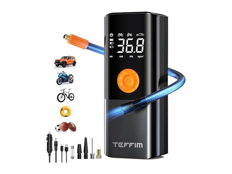 - VERSATILE USE: Suitable for inflating car tires, bike tires, sports equipment, and other inflatables