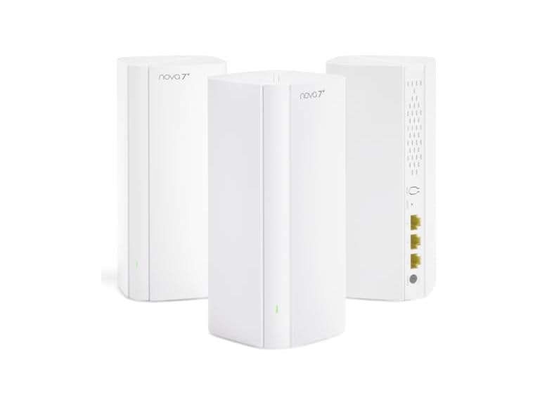 - (1) Tenda Wi-Fi 7 Mesh System BE3600 โ Dual Band Mesh Wi-Fi System for Home, Covers Up to 6,600 Sq. Ft., Seamless Mesh Network with 3 Gigabit Ports, Supports 160+ Devices, MLO, VPN, 4K QAM, ME3 Pro (3-Pack)