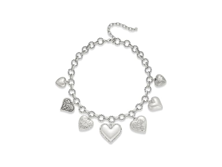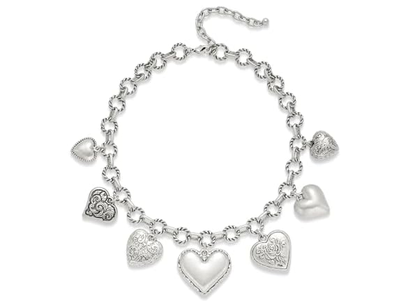 - (1) TENTMENTISE Worn Silver Heart Necklaces for Women with Seven Textured Heart Charms - Layered Charm Statement Necklace - Women Jewelry Gift