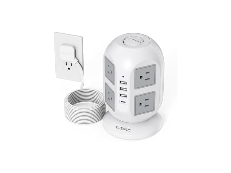 - TESSAN 10ft Cord Power Tower (8 Outlets, 1 USB-C, 3 USB-A)