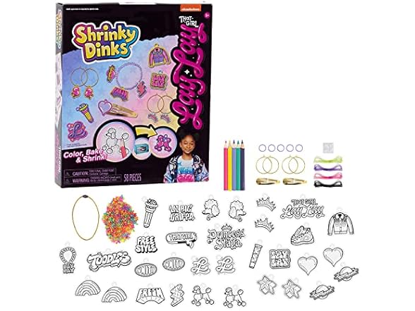 - Color, Shrink, and Accessorize: Bake and create lots of custom jewelry with the That Girl Lay Lay Shrinky Dinks Charm Kit.