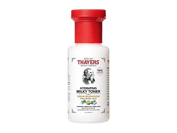 (1) THAYERS Milky Hydrating Face Toner with Snow Mushroom Tremella, Hyaluronic Acid and Elderflower, Dermatologist Recommended Gentle Alcohol Free Skincare for Dry & Sensitive Skin, Paraben Free, 3 Fl Oz