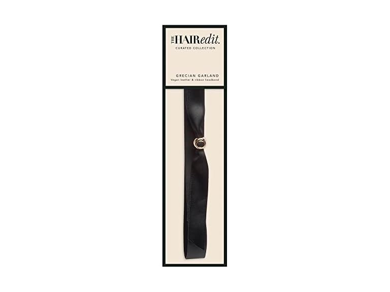 - The Hair Edit Grecian Garland - Black Vegan Leather and Satin Hair Ribbon Headband
