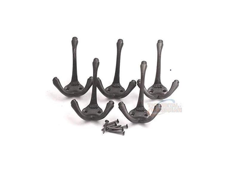 - The Metal Magician Pack of 6 Coat Hooks Wall Mounted Leaf Style Single Robe Hanger Iron Blacksmith Key Holder Towel, Handbags, Hat Hanging Perfect for Bathroom, Kitchen, Living Room (Black)