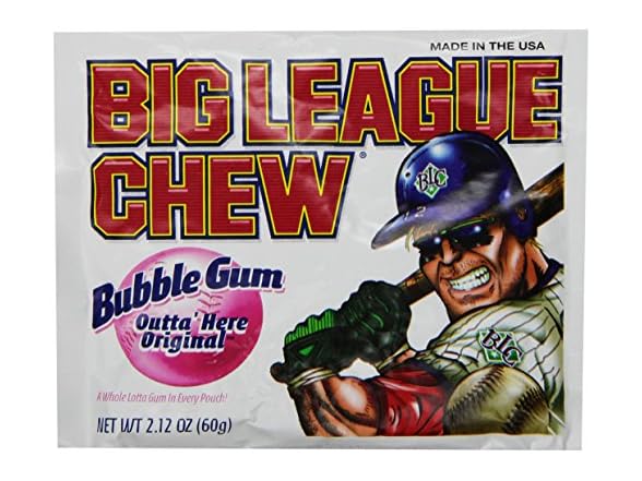 Long lasting flavor. Official players choice. MLB players choice. A whole lotta gum in every pouch. Sitting in a bullpen one night, Portland Mavericks' left-hander, Rob Nelson, and teammate Jim Bouton, the former New York Yankee All-Star, wanted something really different and fun to chew. So they came up with a great idea - shredded bubble gum in a pouch - and called it Big League Chew. It soon became a hit with ballplayers everywhere. That was over 20 years ago. Today, and 400 million pouches later, more and more professional and amateur players in all sports are turning to Big League Chew, a fun gum that keeps your mouth from getting dry when the game is on the line. Made in the USA.