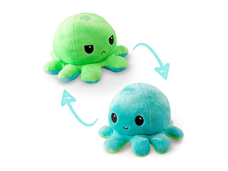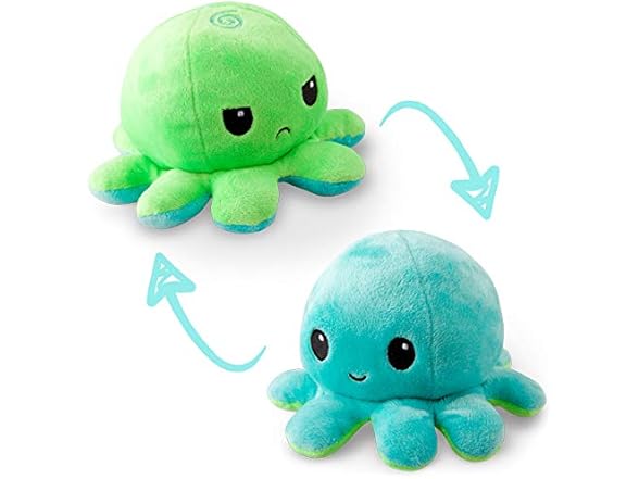 - (1) TeeTurtle - The Original Reversible Octopus Plushie - Green + Aqua - Cute Sensory Fidget Stuffed Animals That Show Your Mood