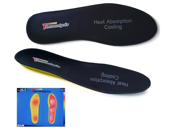 - (1) Generic ThermThermalysis Aire Cooling Insoles âAbsorb Heat, Cool Feet, Breathable Cushion Shoe Inserts, Relieve Fatigue for Men & Women (MenâSize 8.5/ 265mm)