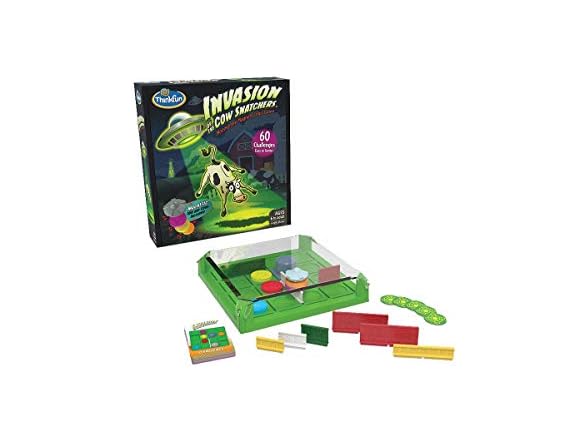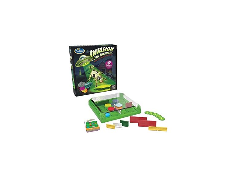 - (1) Think Fun Invasion of the Cow Snatchers STEM Toy and Logic Game for Boys and Girls Age 6 and Up - A Magnet Maze Logic Puzzle, Multi, (1021)