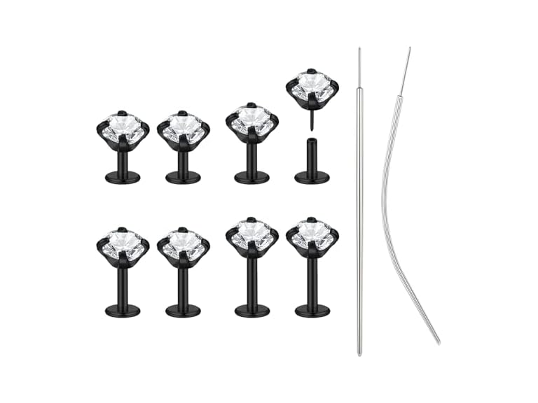 - (1) BodyAce 18G/20G Threadless Push in Nose Ring Studs, 316L Surgical Steel Flat Back Earrings Tragus Cartilage Stud, CZ Lip Rings Labret Medusa Piercing Jewelry [Black;18G;2mmCZ]