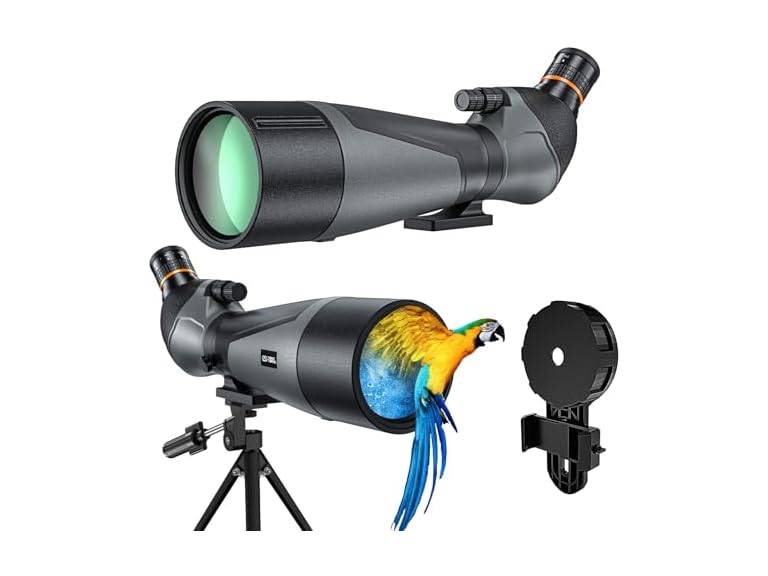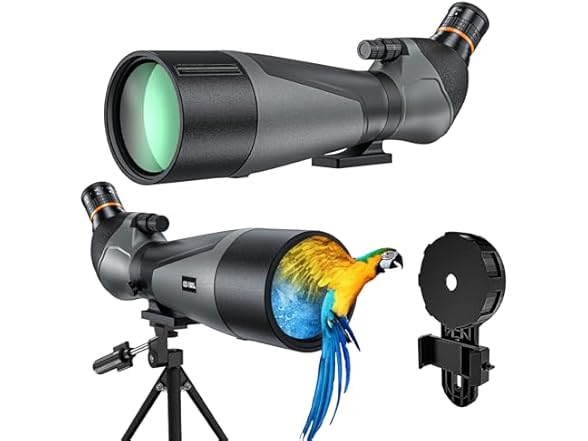 - Complete Accessories: Capture stunning photos effortlessly with the included smartphone adapter and sturdy tripod. Whether you're documenting your observations or sharing with friends, this spotting scope is easy and convenient.