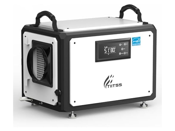 - 120 Pints Dehumidification Capacity: Tiitss crawl space dehumidifier provides a powerful 230 CFM airflow and a maximum dehumidification capacity of 120 pints/day (53 pints AHAM), higher than other models on the market, making it fast and powerful to cover larger areas up to 5500 square feet and effective for warehouses, offices and perfect for low clearance crawl spaces or tight basements
