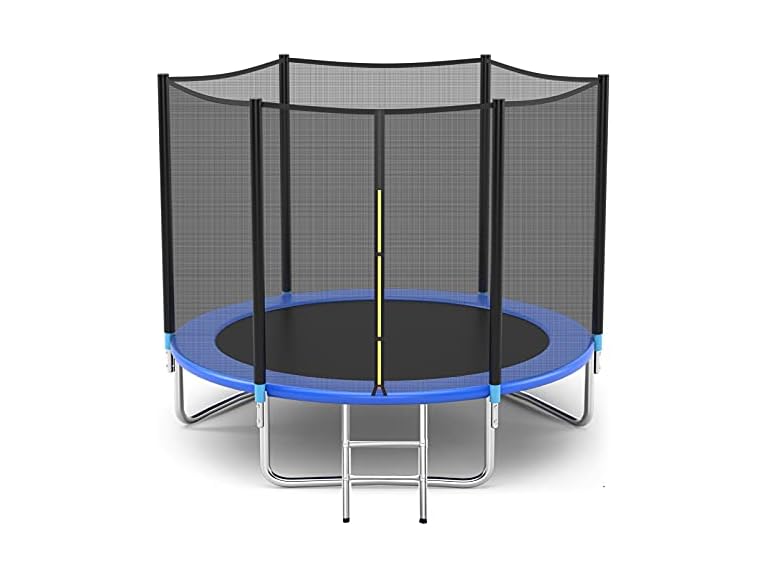 - A Safe Enclosure for Safe Play:Safety and quality in backyard play is at the heart of everything we do. We have created a 10ft Frame Diameter,72inch Enclosure Height and 360-degree net safety enclosure that is UV, fade resistant and resistant to tearing. These will prevent your child from jumping off the trampoline.