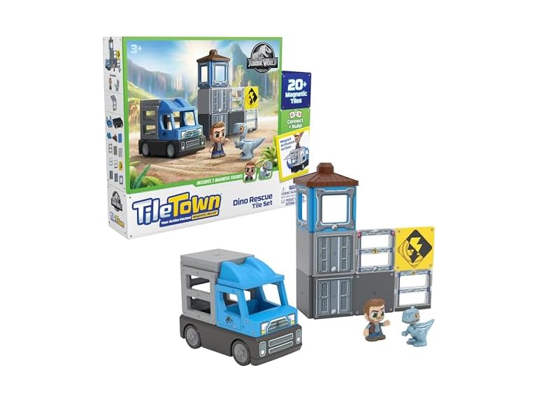 - The Tile Town Jurassic World Rescue Construction Set includes a magnetic Figure and a Dinosaur Figure to bring your play to life as they interact with the Action Tiles!
