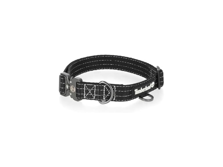 - Tactical Style Collar – Timberland pet collars are designed with functionality and style in mind. These collars are made from reflective quad stitching to make sure your furry friends are secure while also looking good. The collars include a quick release metal buckle with a loop for your pet’s nametag